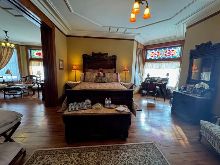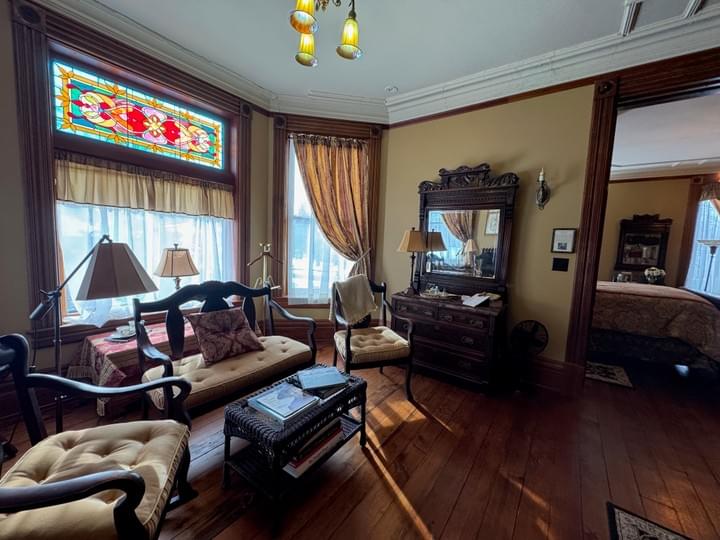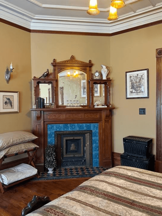 Though not operable, the fireplaces in the suite are reminders of the house's past.